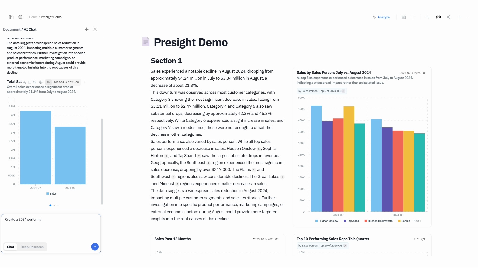 One of the enterprise-ready tools we provide is Presight, an AI Data Analyst built for trust, control, and scale. Unlike generic AI tools, it runs only on verified enterprise metrics, eliminates hallucinations, and enforces strict governance. Presight connects directly to your data warehouse or lake, giving business teams accurate, self-service insights within seconds – without new pipelines or added headcount.